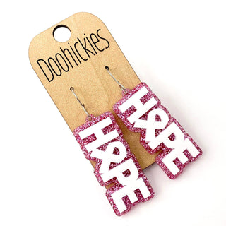 2" Hope Pink Glitter Layered Acrylic Earrings - Breast Cancer Awareness Earrings