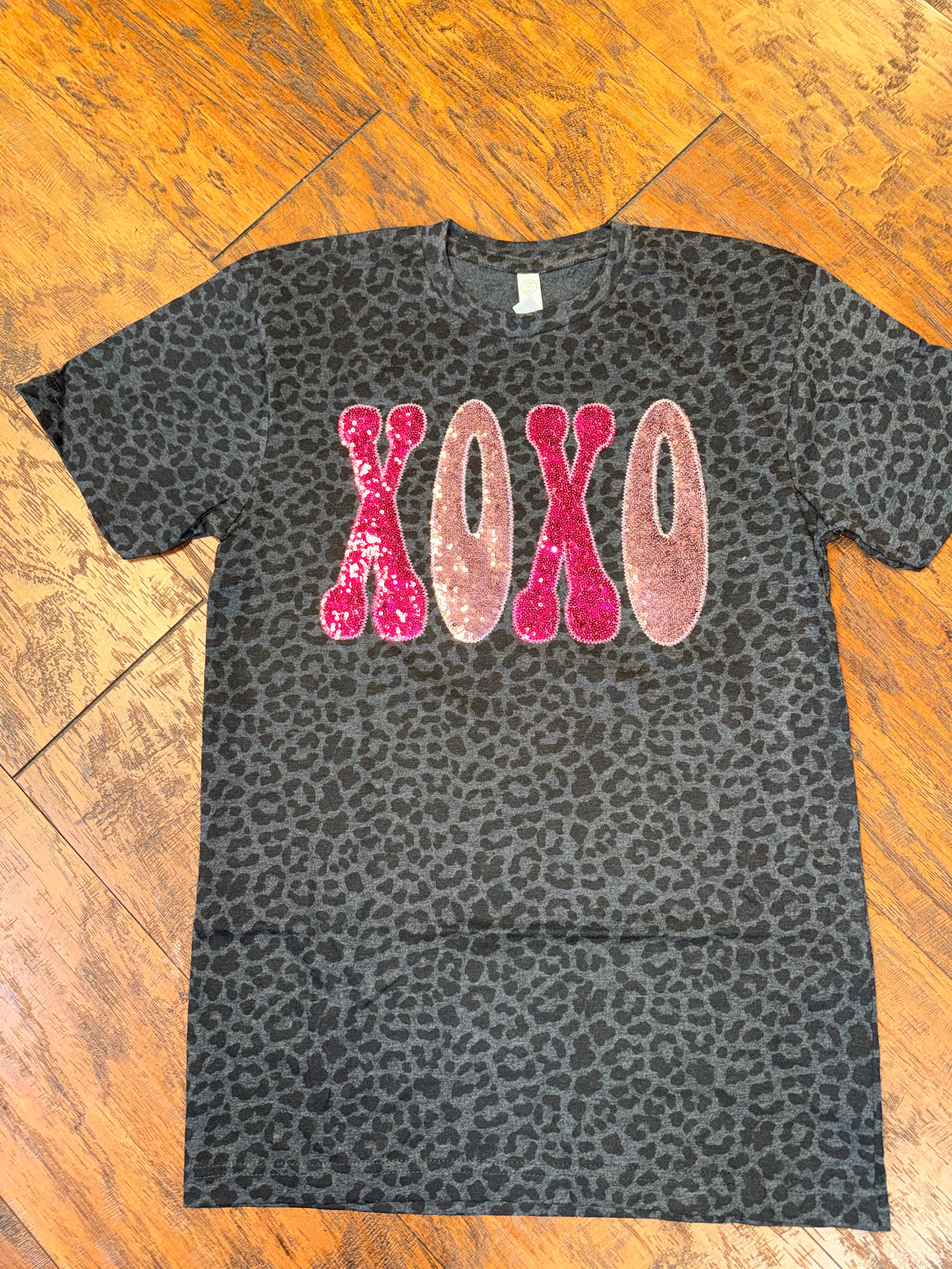 This tee is bringing all the Valentine’s vibes with a bold twist. Featuring XOXO fully sewn-on sequins in shades of pink and blush, this design pops perfectly against the edgy leopard background. The sequins are stitched (not vinyl), giving it a high-quality, boutique finish with extra sparkle.