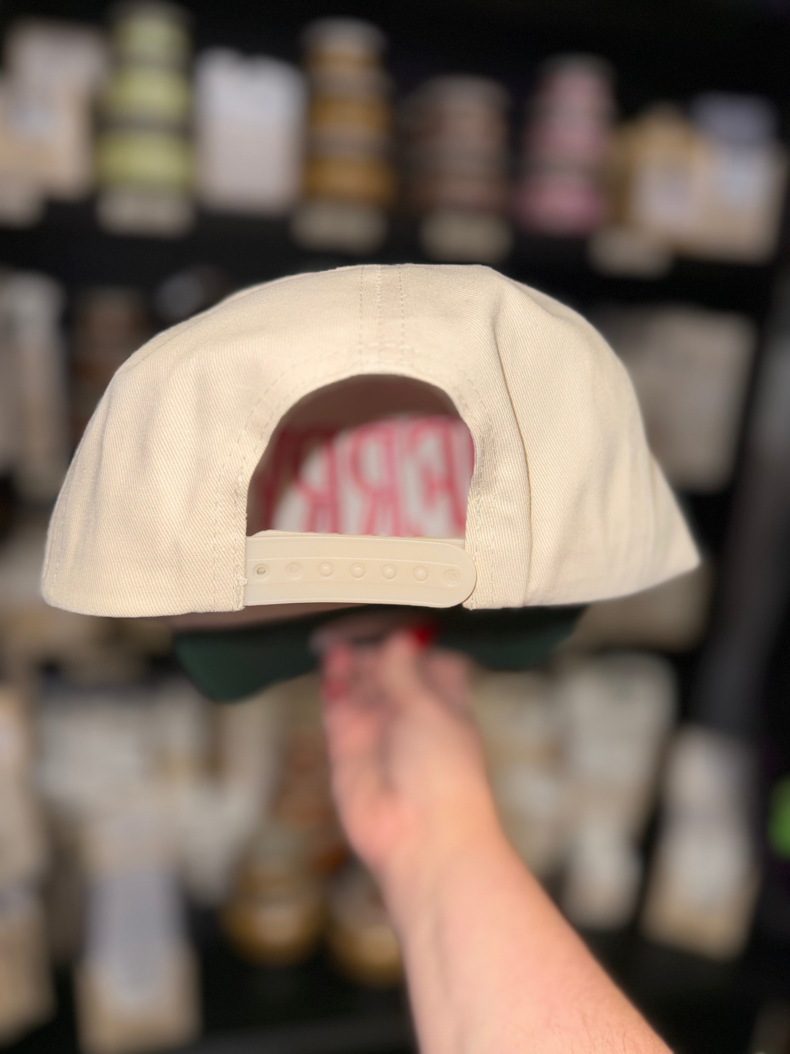 Celebrate the season with this charming tan canvas hat featuring "merry" embroidered in vibrant red across the front. The contrasting green brim and button add festive flair, while the snap back closure ensures a comfortable, adjustable fit for any head size. Perfect for holiday gatherings, casual outings, or spreading seasonal cheer wherever you go.