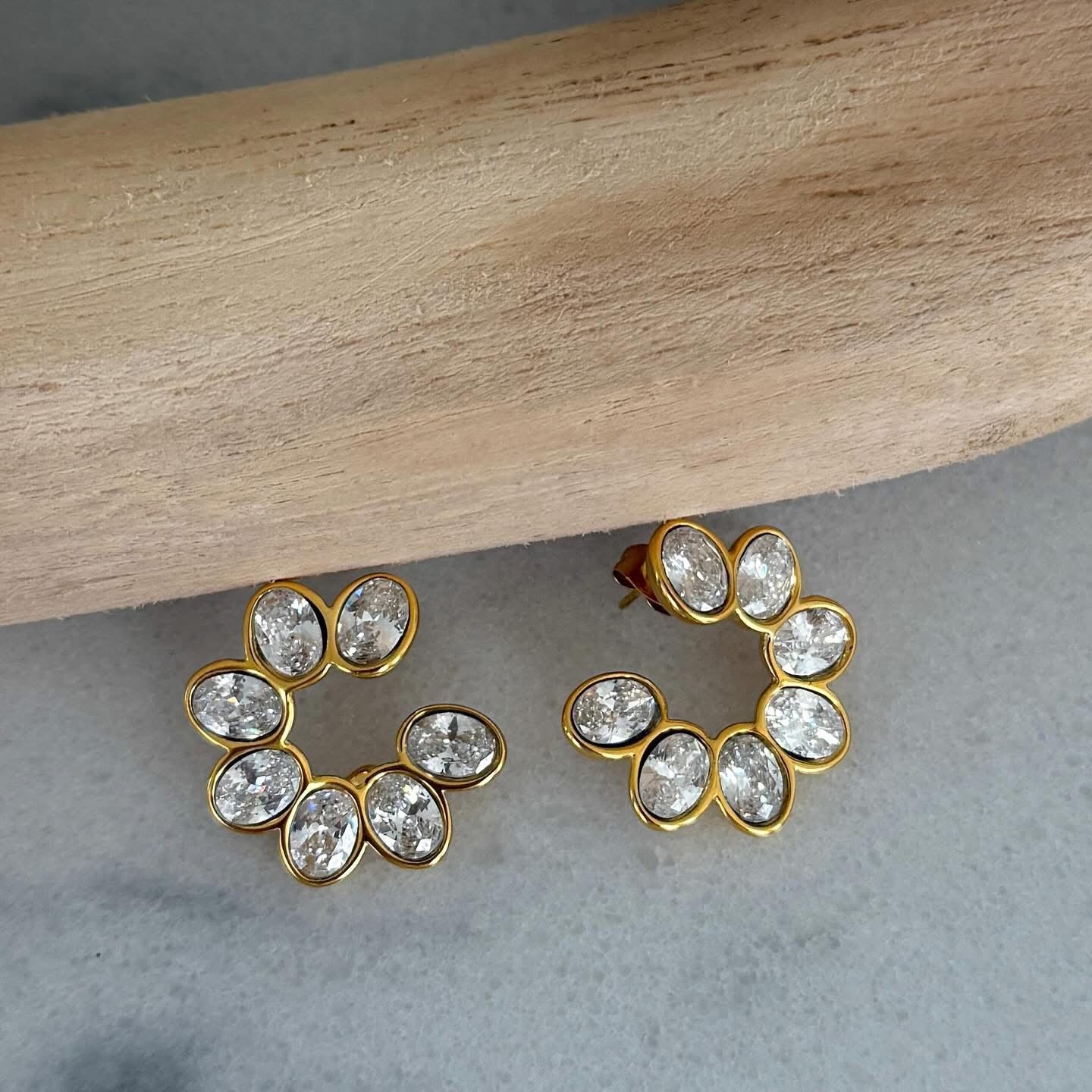 Sparkle meets modern chic with these stunning Chansuttpearls crystal C-hoop earrings! Designed with a unique open hoop shape and shimmering oval crystals, these earrings give you the perfect amount of glam without feeling too heavy. They’re the ultimate “dress up anything” accessory—cute for everyday and gorgeous for special occasions.