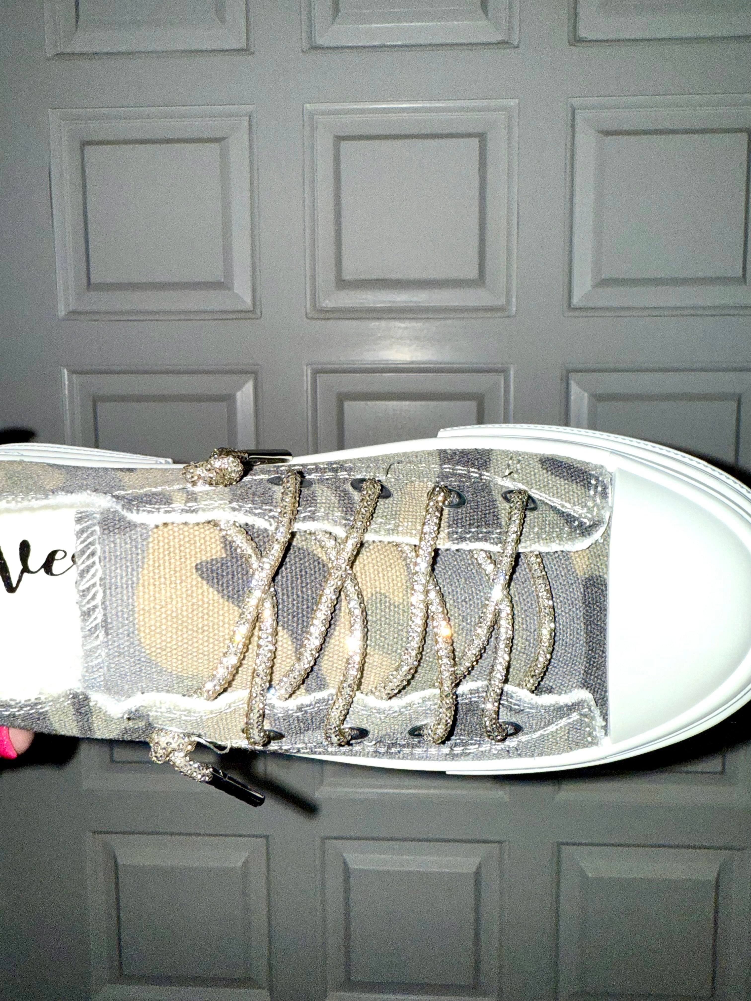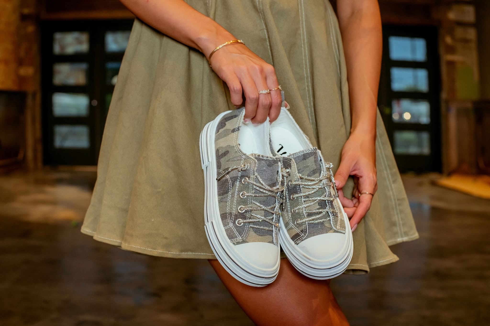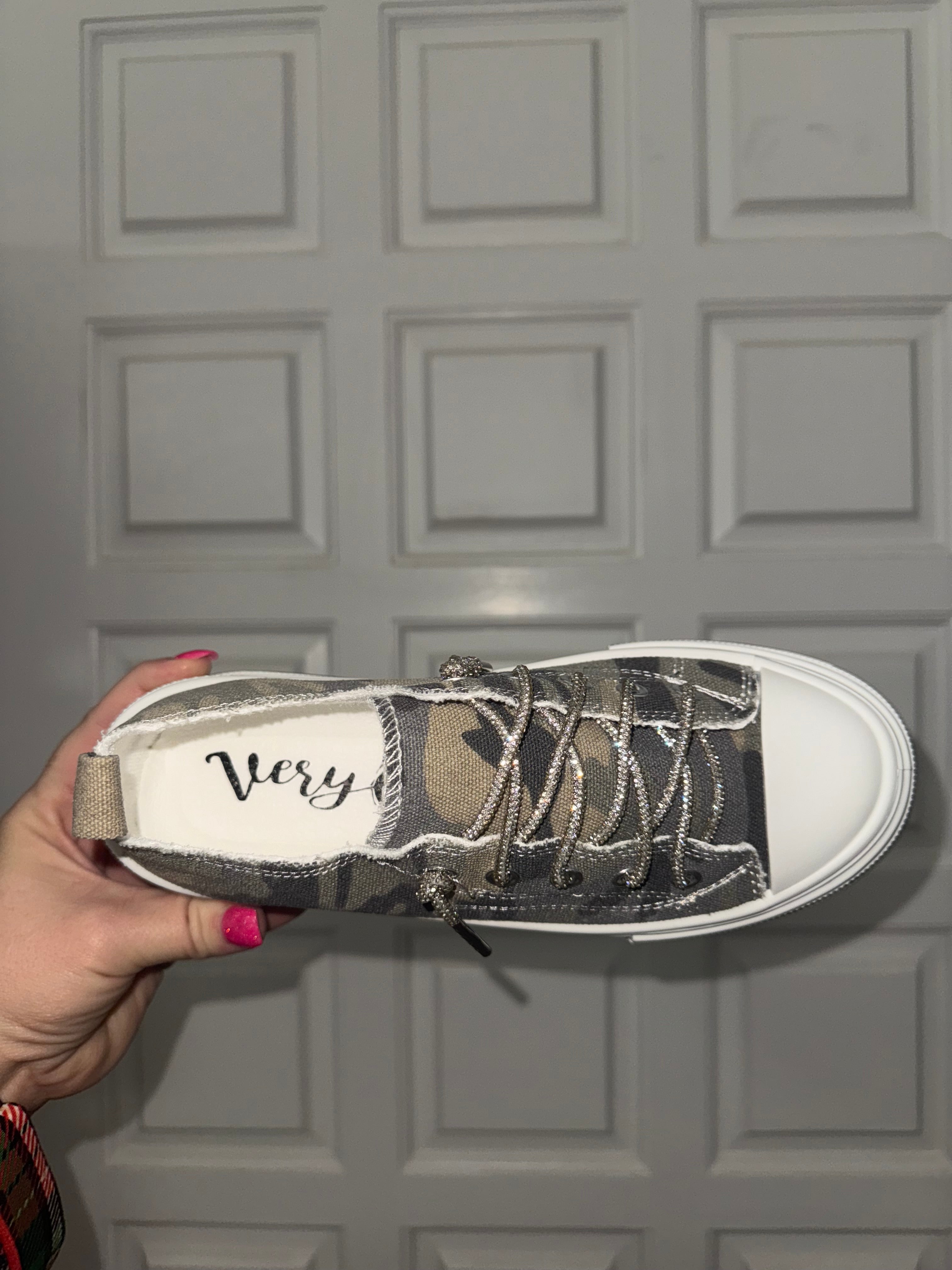 Meet your new go-to sneakers for everyday comfort with a little extra sparkle. The Very G Camo Aman Sneakers feature a soft, flexible canvas body in a trendy camo print paired with eye-catching bling-detailed laces that add the perfect touch of glam.