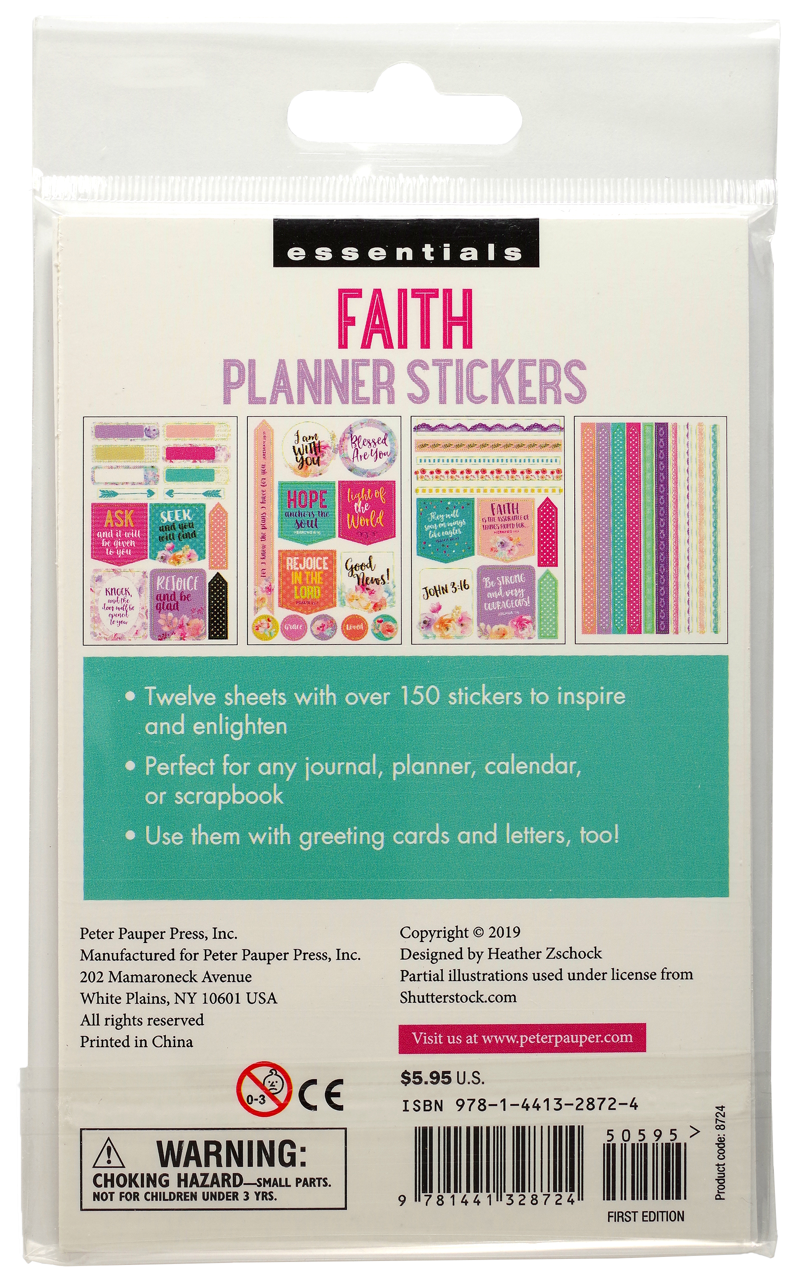 Here are more than 150 faith-based stencil designs for personalizing your planner, journal, or scrapbook! Set is packed with symbols, banners, letters, numbers, and more. Perfect for Bible journaling, bullet journaling, art projects, and memory books! Selections include words such as ''Faith,'' ''Hope,'' ''Love,'' a butterfly, sheep, dove, praying hands, weather symbols, shapes, arrows, and bursts. Sticker set fits in the back pockets of Peter Pauper Press calendars and larger journals. Package measures 5-1/4'' wide x 8-5/8'' high.
