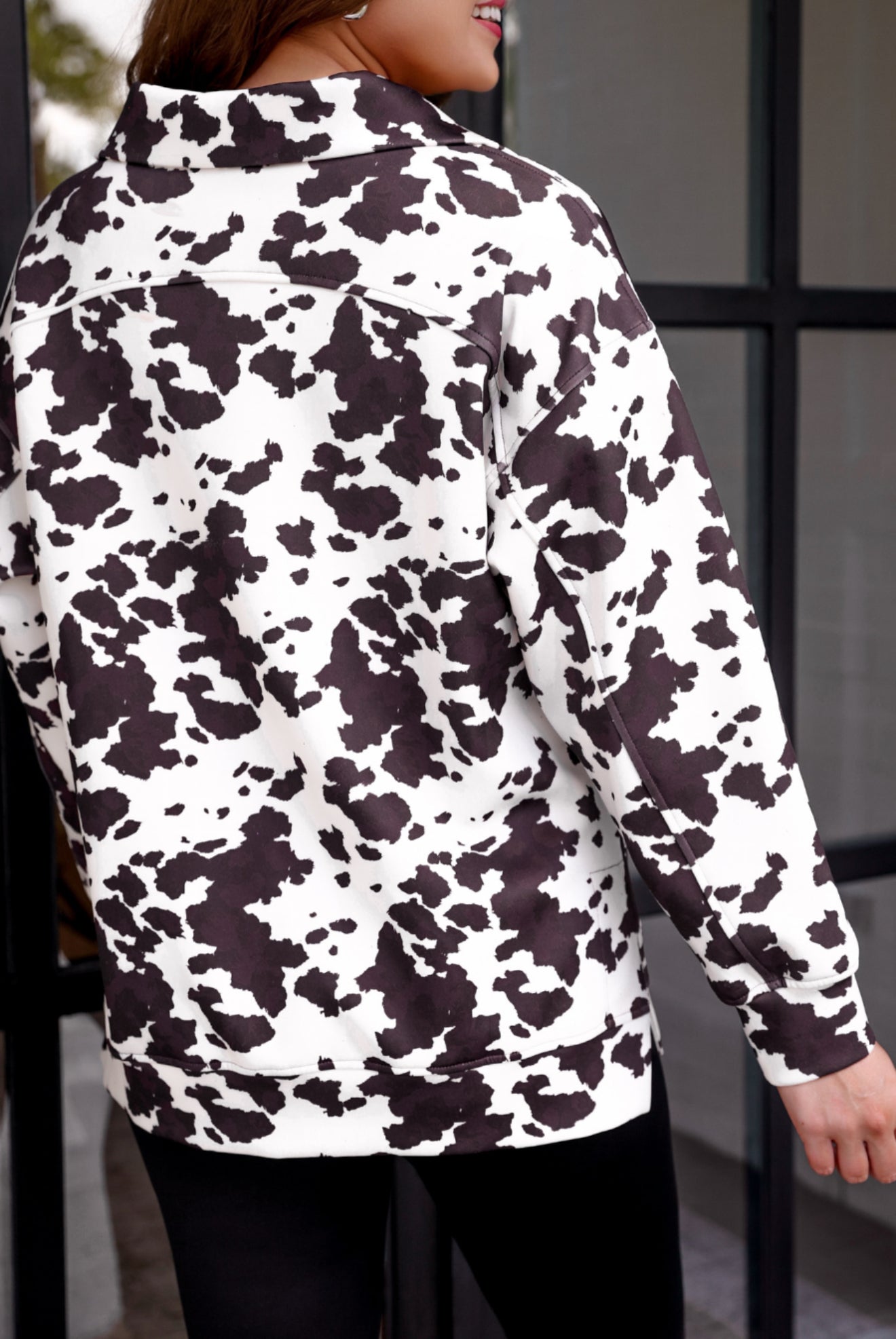 Stay stylish and cozy with our Everyday Pullover, Chocolate Cowhide Couture. This pullover features a warm brown cow pattern, accented by a gold quarter zip. Made for comfort, it's perfect for everyday wear. Order now to add this trendy piece to your wardrobe.