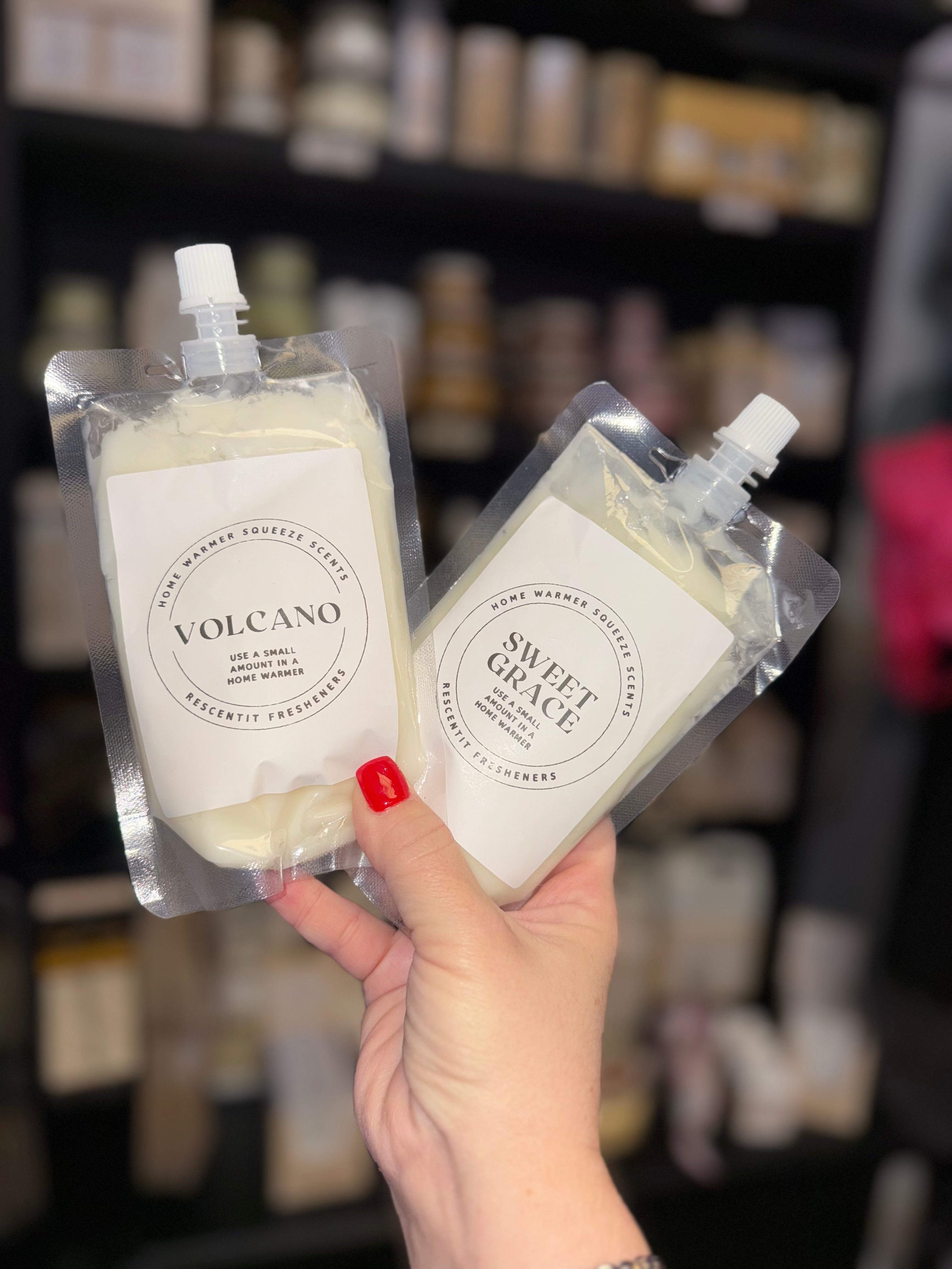 The ReScentIt squeeze can be used in any warmer, requiring only a dime-sized amount. You can add more as needed when the scent fades and empty the dish only when it’s full. One 6 oz pouch is equivalent to 10 wax bars, each with 6 cubes.